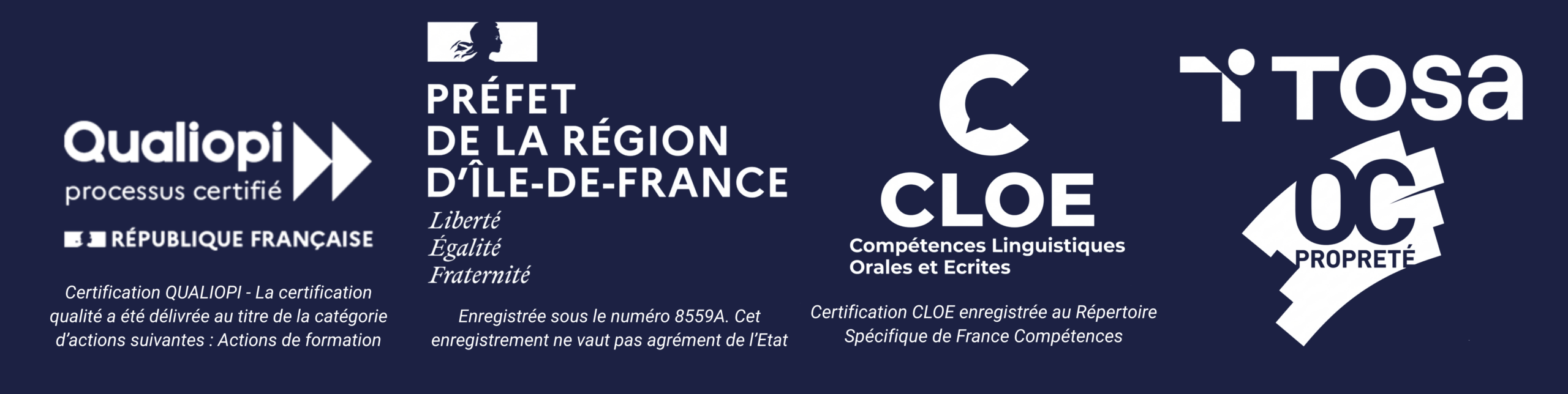Exigez l’excellence pour votre parcours professionnel : notre centre certifié Qualiopi et agréé OC Propreté, CLOE et Tosa vous garantit des formations de référence, éligibles au financement.